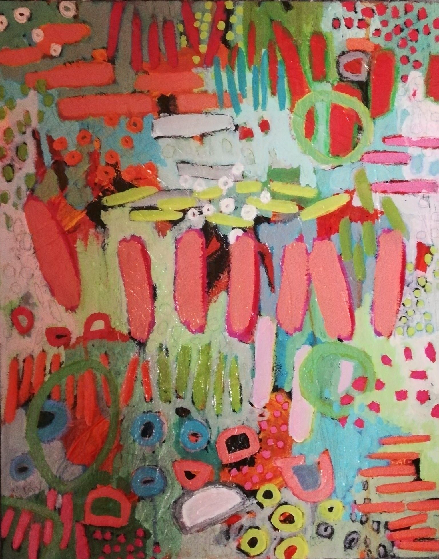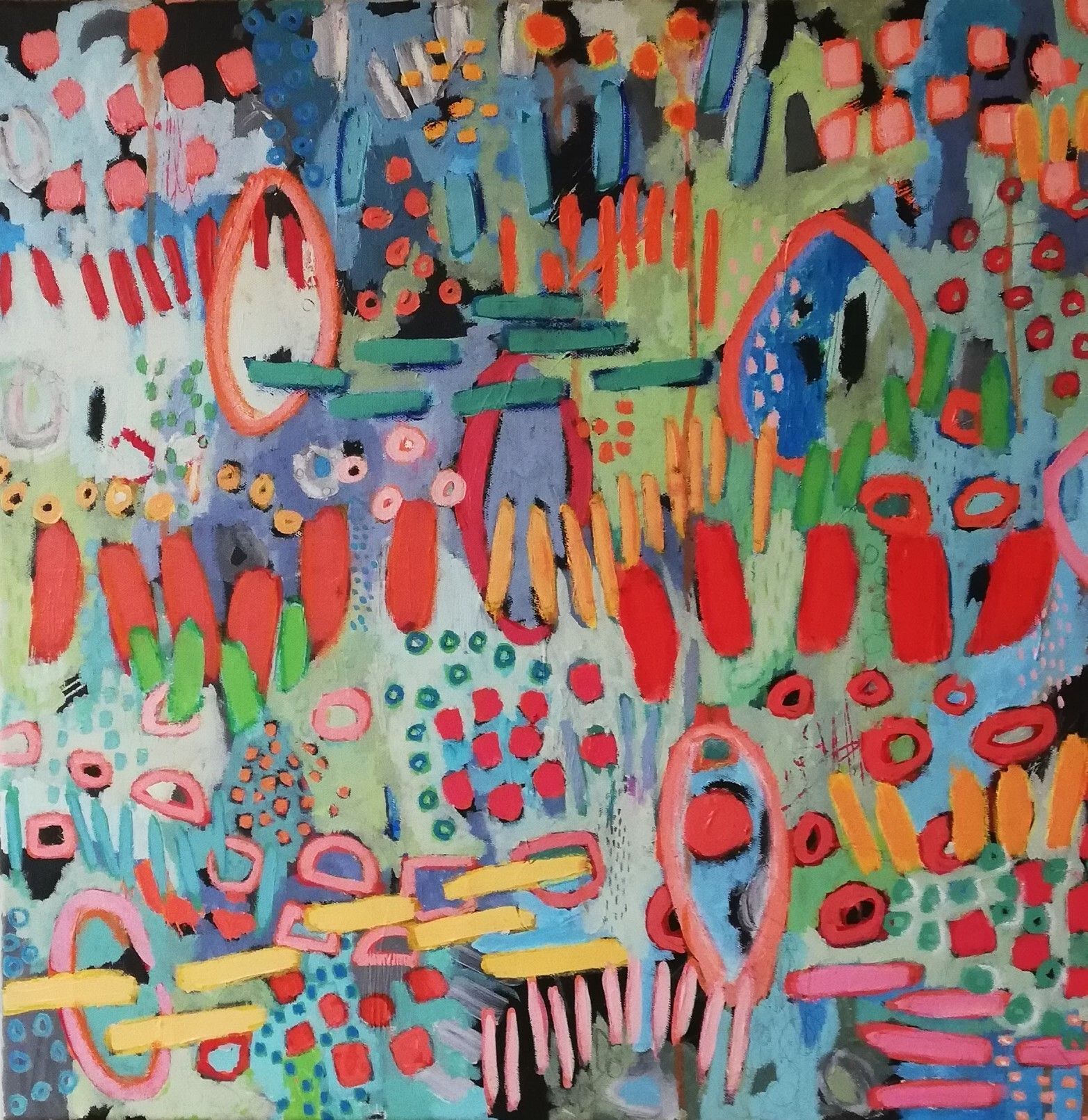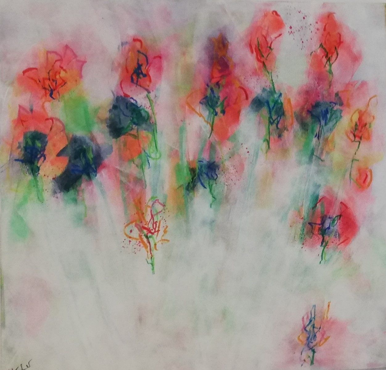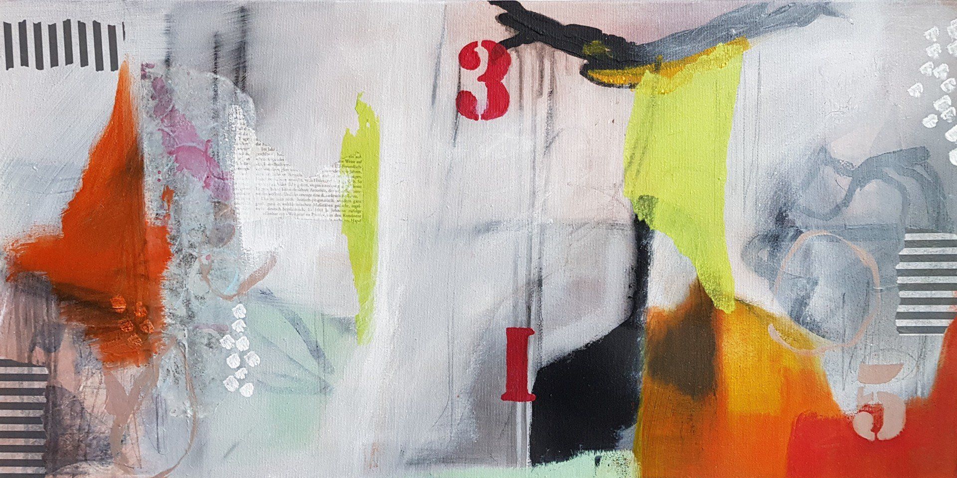 Acryl, Ölpastelle und Buntstifte auf Leinwand