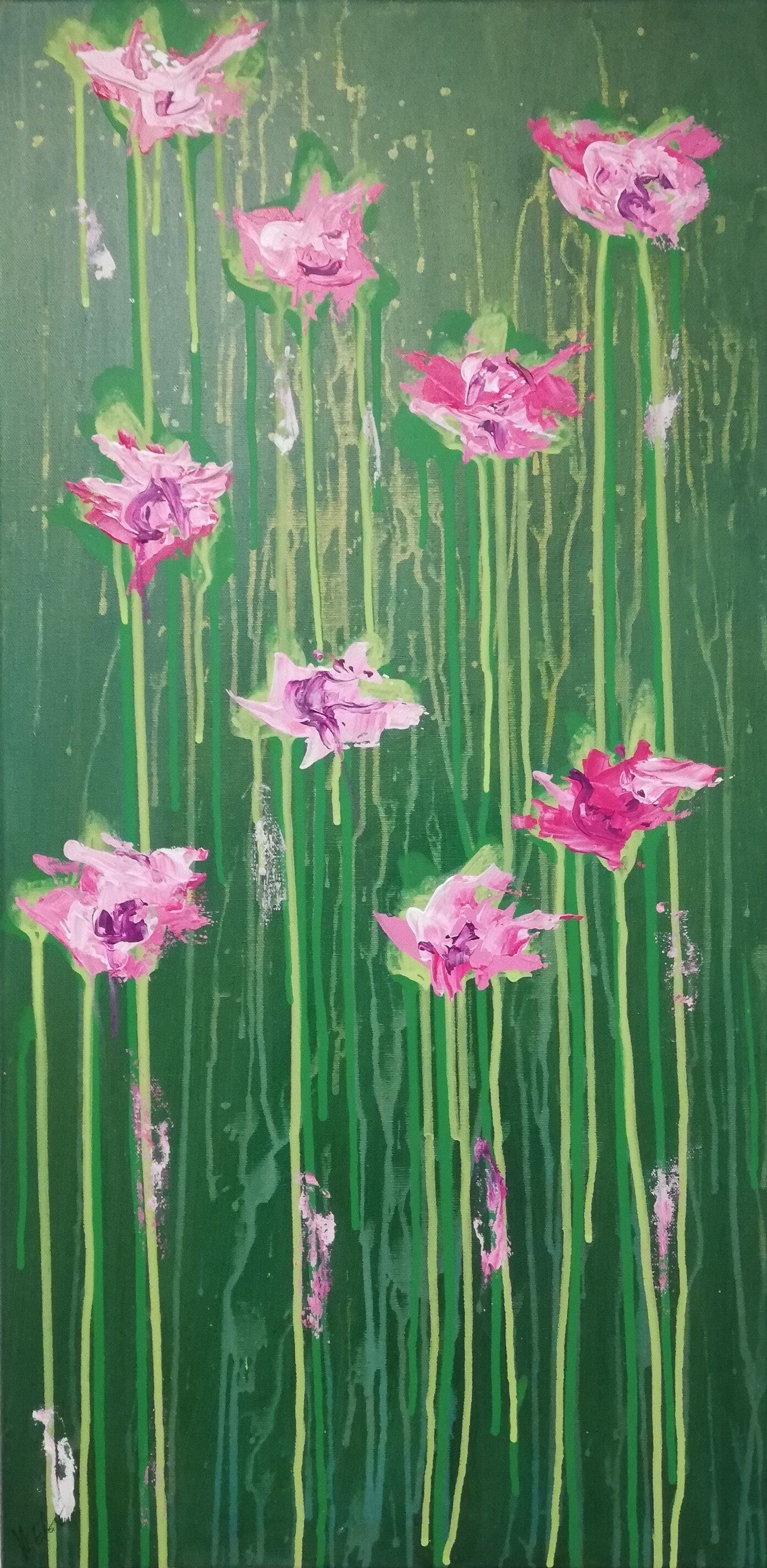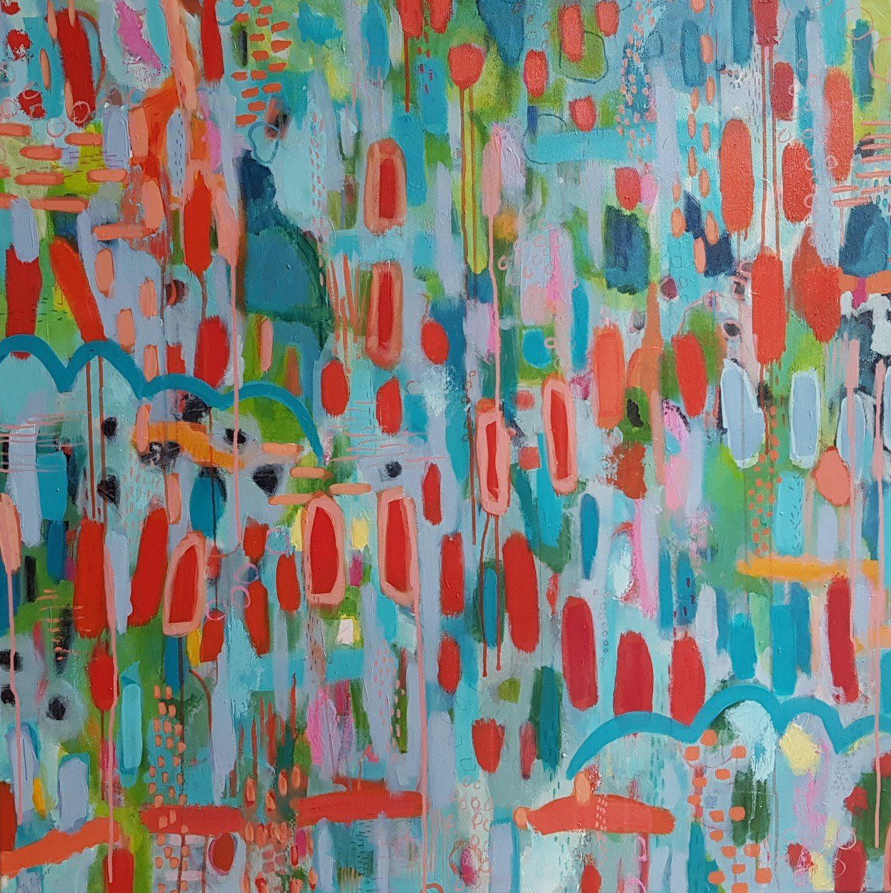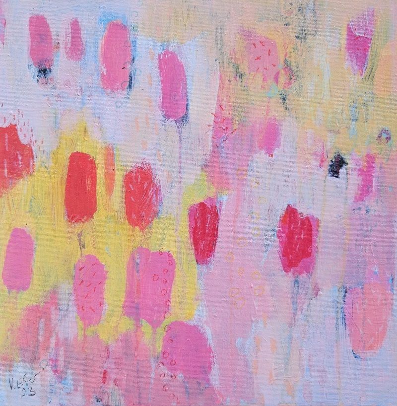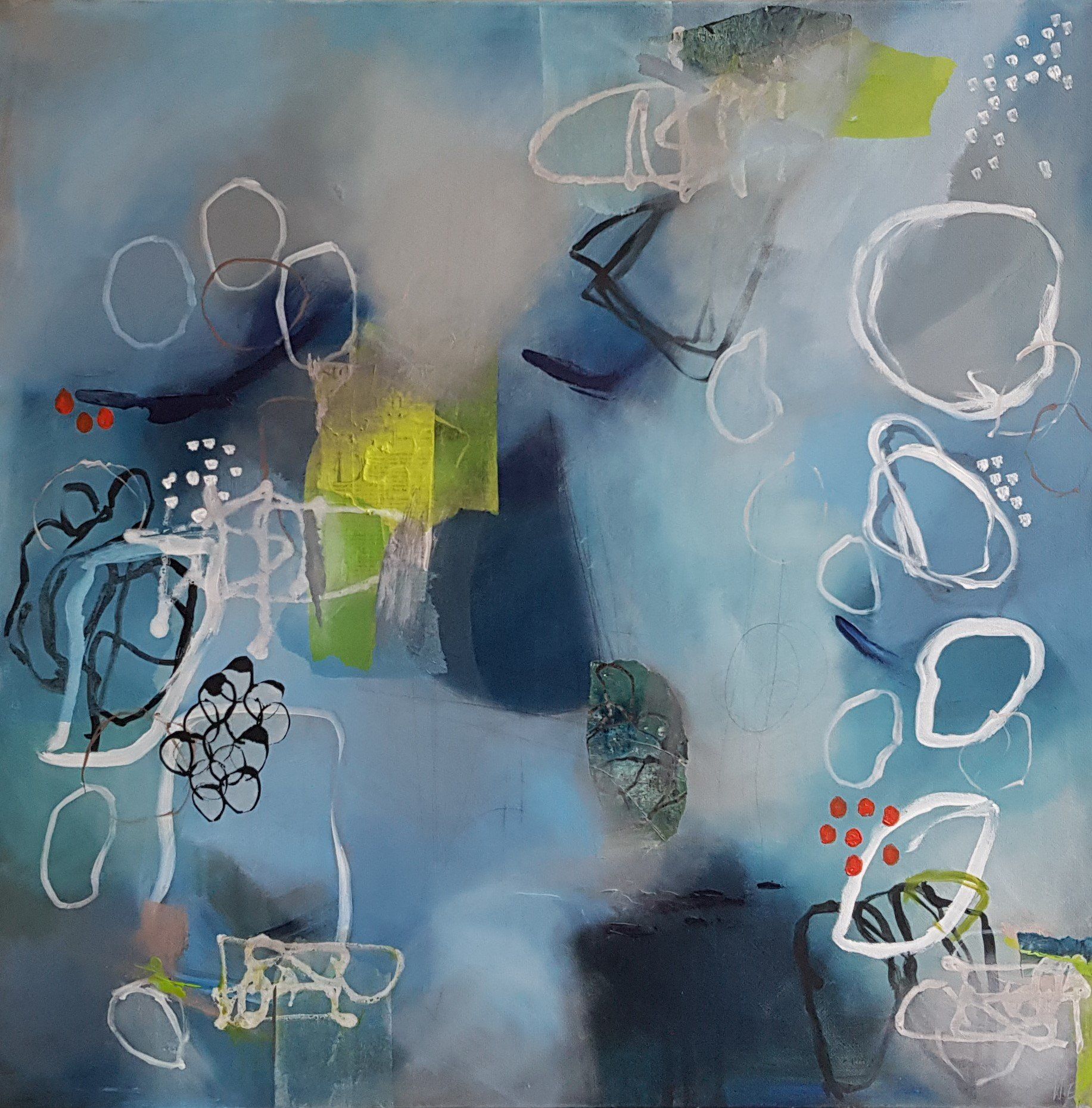 Acryl, Ölpastelle und Buntstifte auf Leinwand