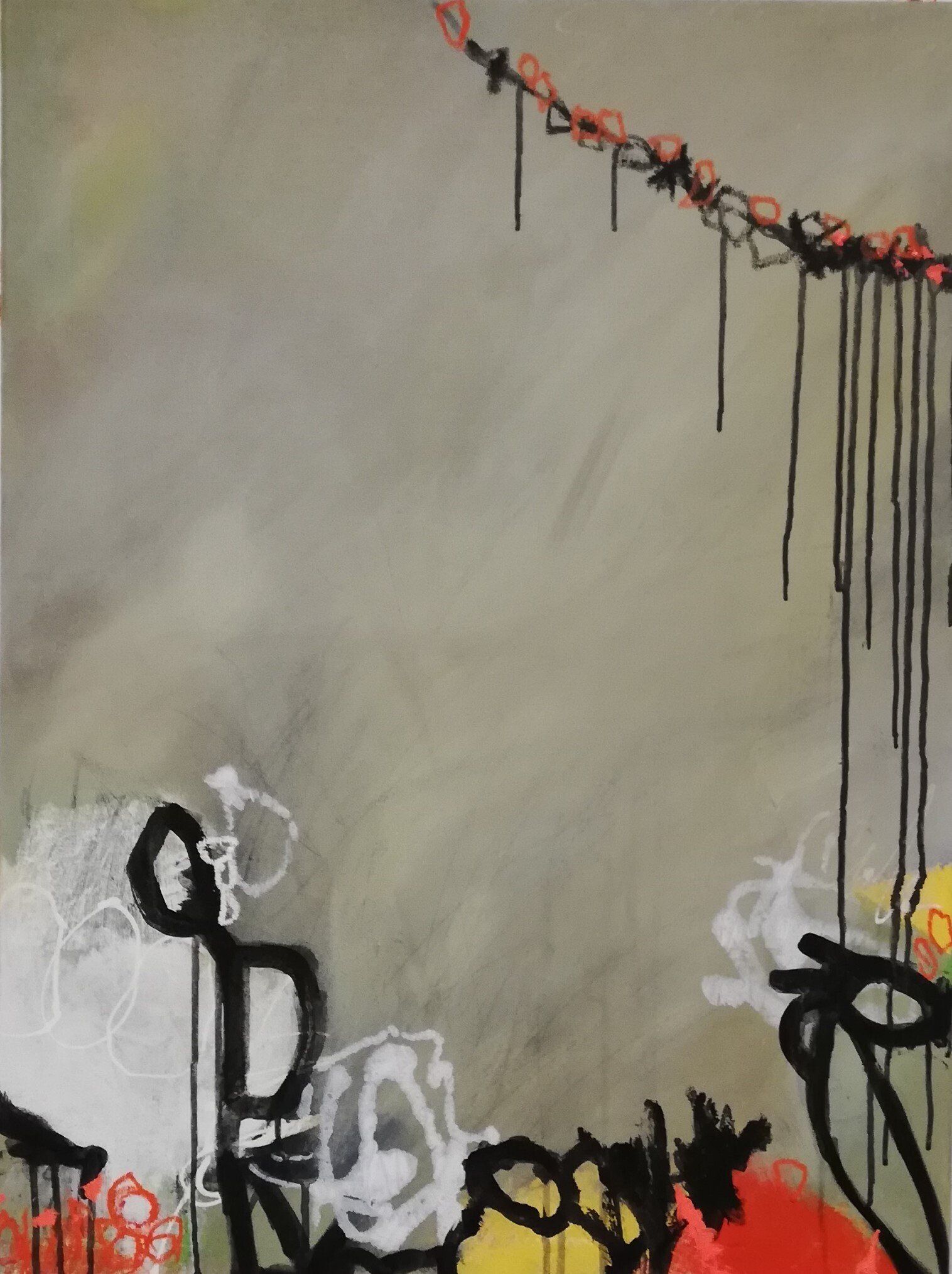 Acryl, Öl-Pastell und Buntstift auf Leinwand