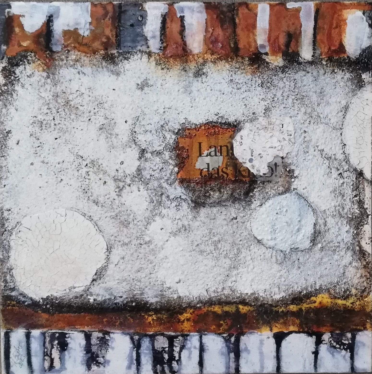 Rost, Kaffee, Acrylfarben, Marmormehl, Papier auf Malkarton