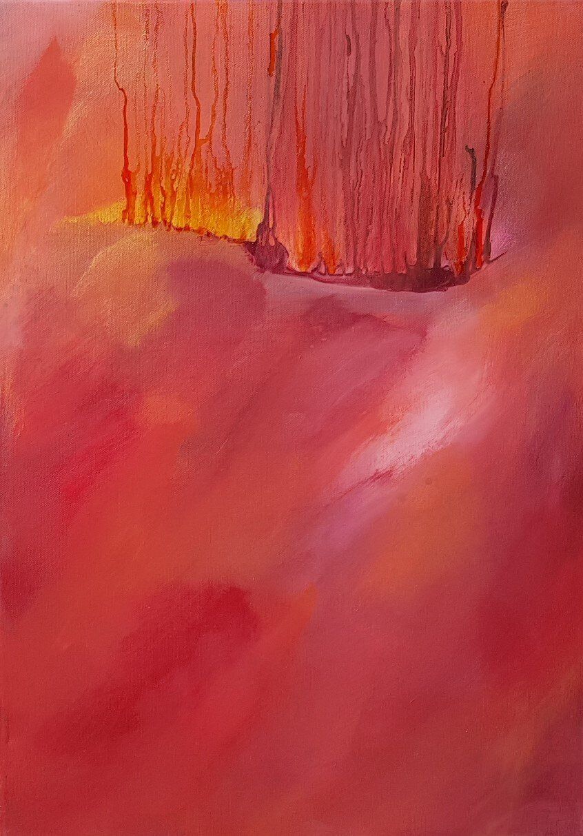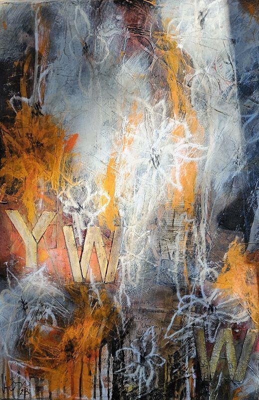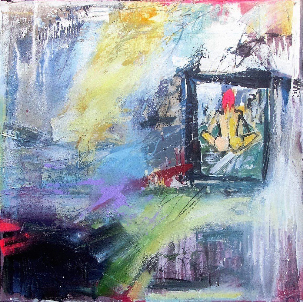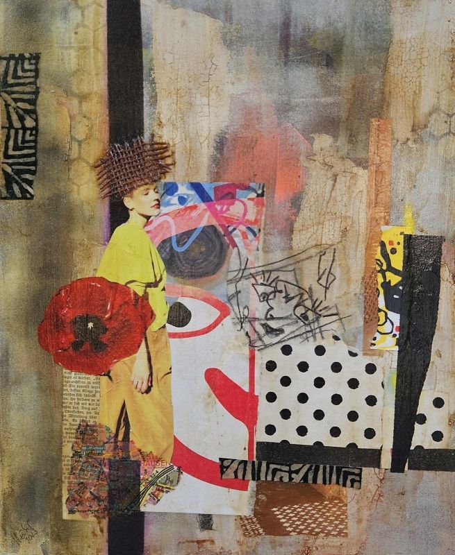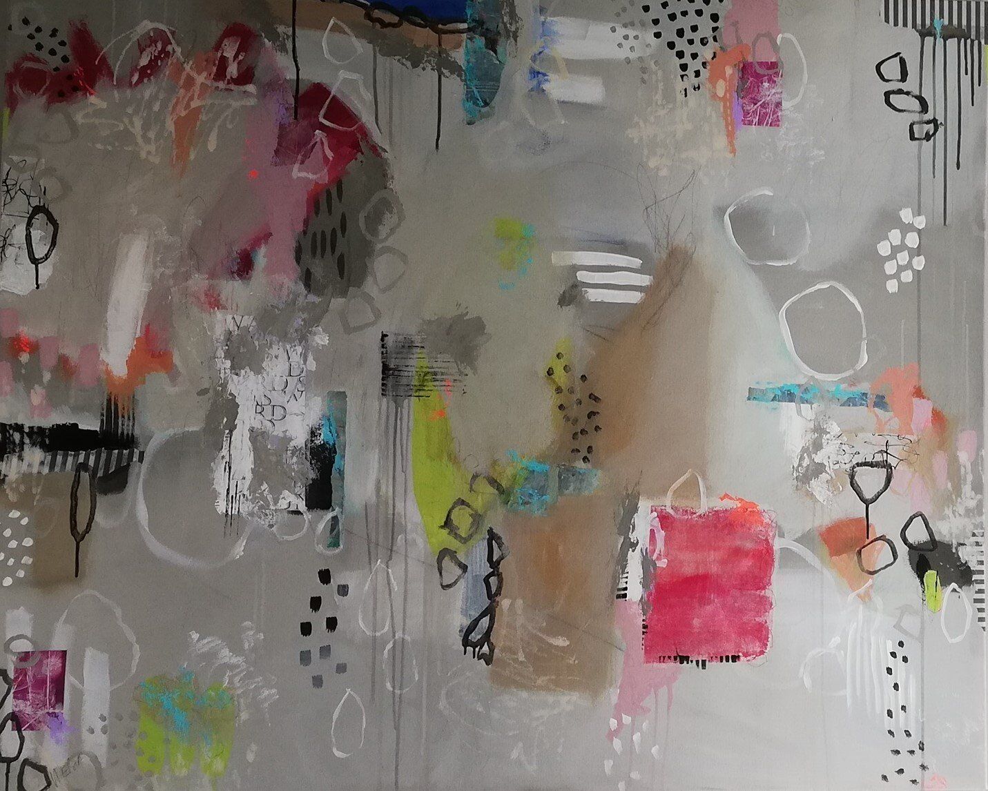 Acryl, Öl-Pastelle und Farbstifte auf Leinwand