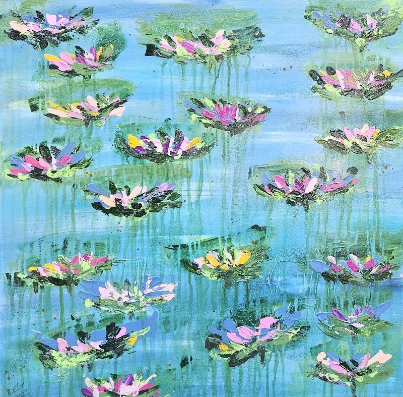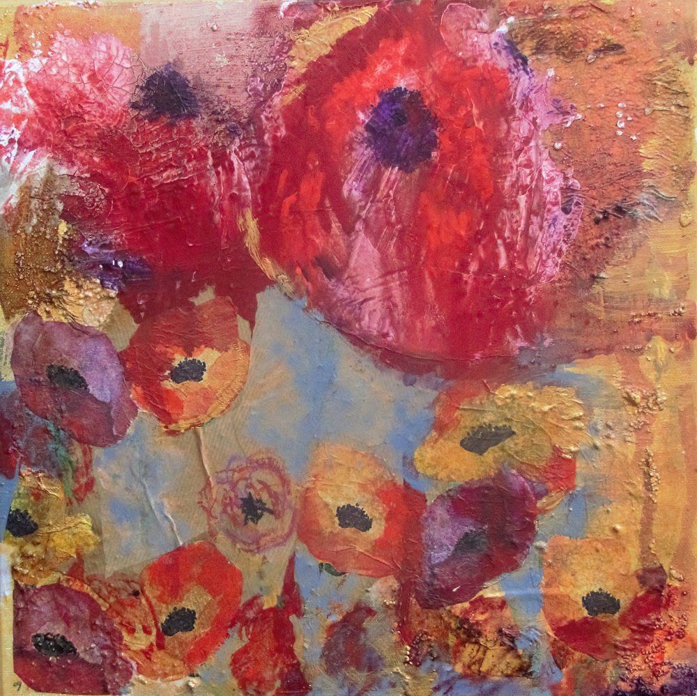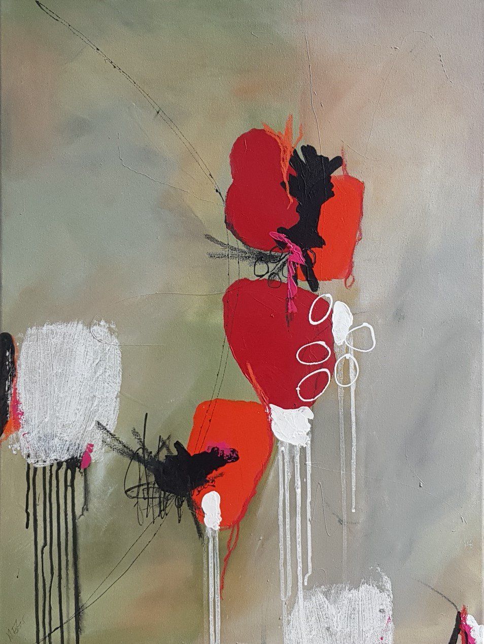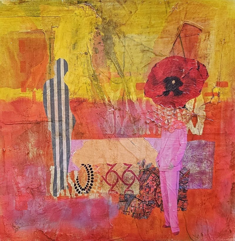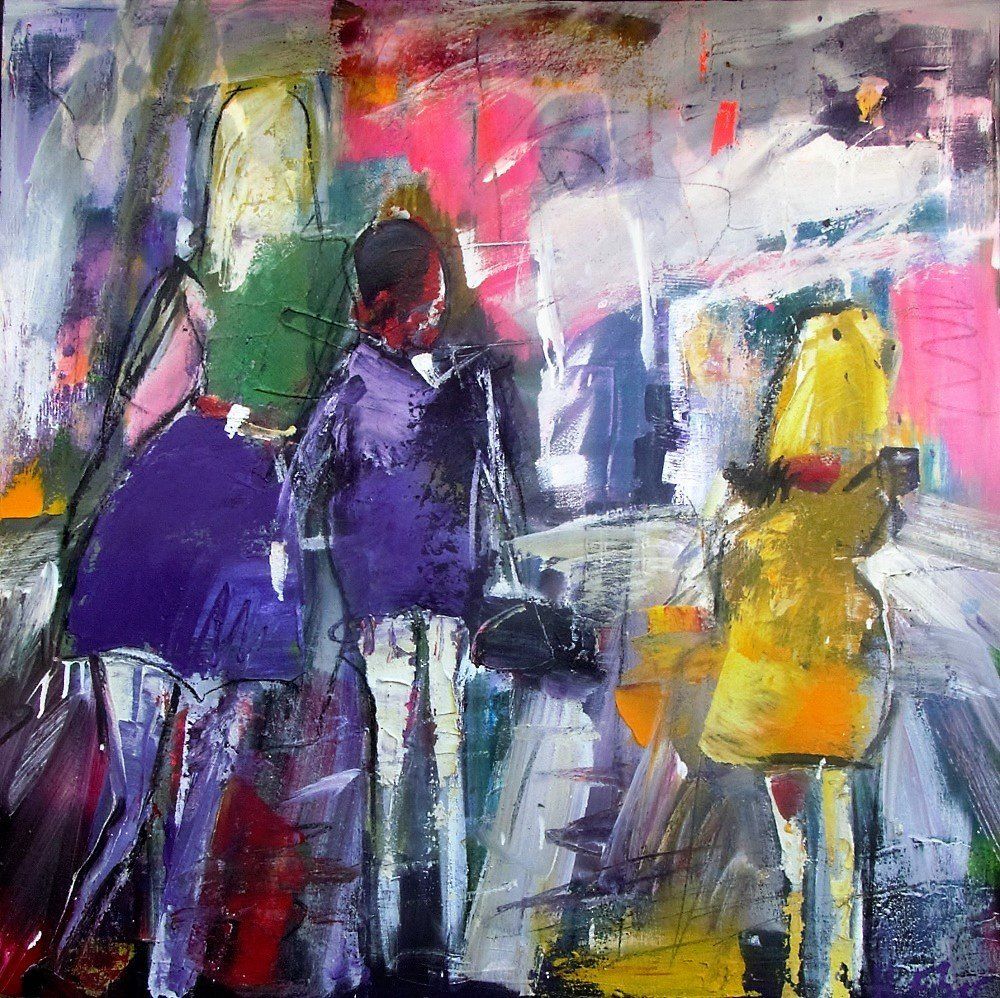 Acryl, Öl-Pastelle und Farbstifte auf Leinwand