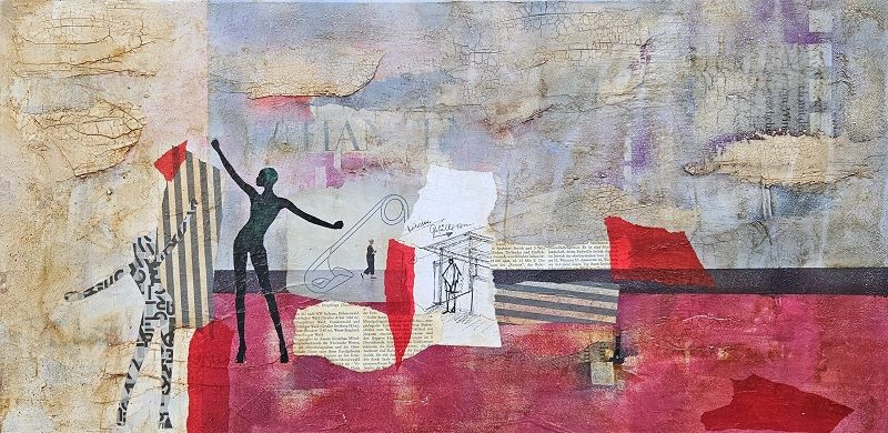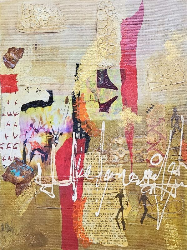Collage - Papier, Acryl, Asche, Sand, Kohle auf Leinwand